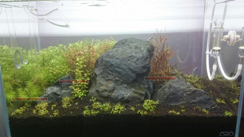 先日、店頭で立ち上げた45cmレイアウト水槽を少々手直し。