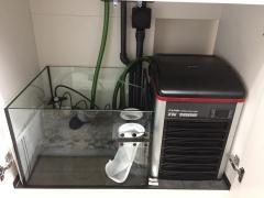 リーファー250ですと、水槽台の中に大半の器材が収納できますので水槽周辺の見た目がかなりスッキリします。