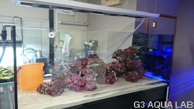 でもペニンシュラは両面から見えるように積み上げるので、通常の水槽より圧倒的にライブロック量は少ないんです。