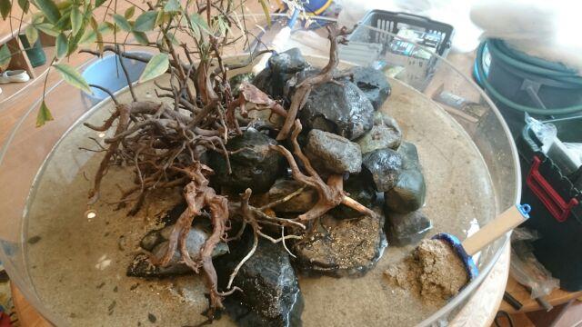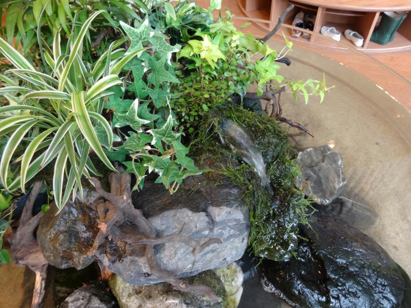 水中ポンプから分岐してエアーチューブで植物の根元に給水していますのでチューブも見えないように処理します。