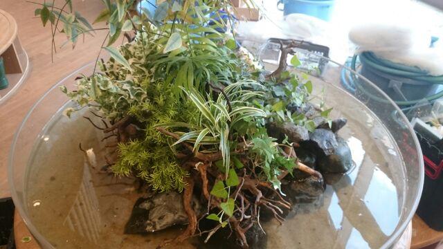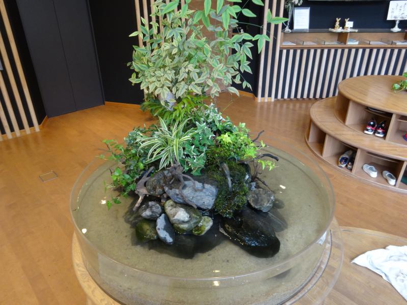 玄関入ってすぐの下駄箱の上に円形水槽でテラリウムを設置させて頂きました。