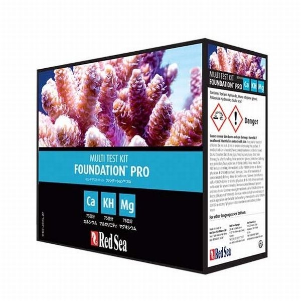 レッドシーのファンデーションプロ マルチテストキットは、サンゴの骨格の基礎成分であるカルシウム、マグネシウム、アルカリ度(KH)を精密に測れる滴定方式の測定試薬セットです。