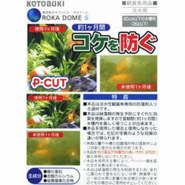 ろかドーム専用ピーカットは、緑藻類の発生予防に優れた効果を発揮しますので長期間(約1ヶ月間)水槽内を美しく保つことが出来ます。