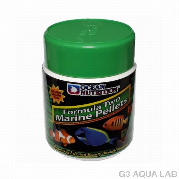 マリンペレットフォーミュラ2は病気への抵抗力を助けるニンニクやグルカン、発色をよくするオキアミ、そしてHUFA(高度不飽和脂肪酸)を含んでいます。そのため少量でもバランスのとれた栄養を与えられ、飼育水を汚しません。フォーミュラ2にはスピルリナやケイプ、天然の藻類が含まれ、植物質を好むヤッコ類などに最適です。