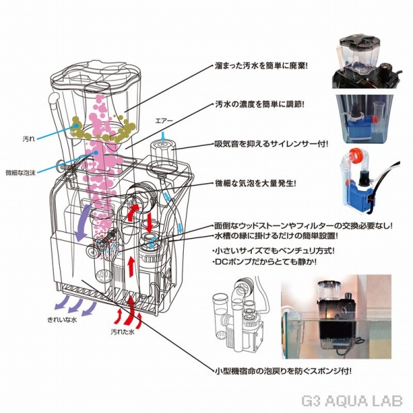 ●設置場所を選ばない省スペースプロテインスキマー!