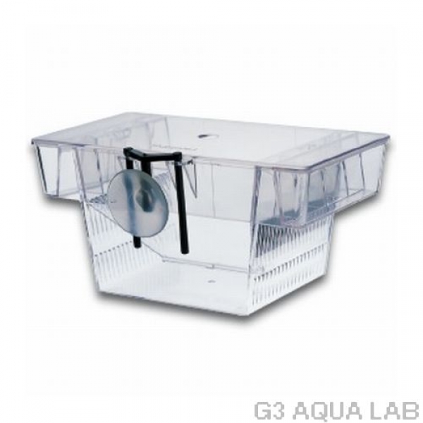 ●水位に合わせて水に浮き、上下する産卵箱です。グッピーなどの出産に、稚魚の隔離に最適です。