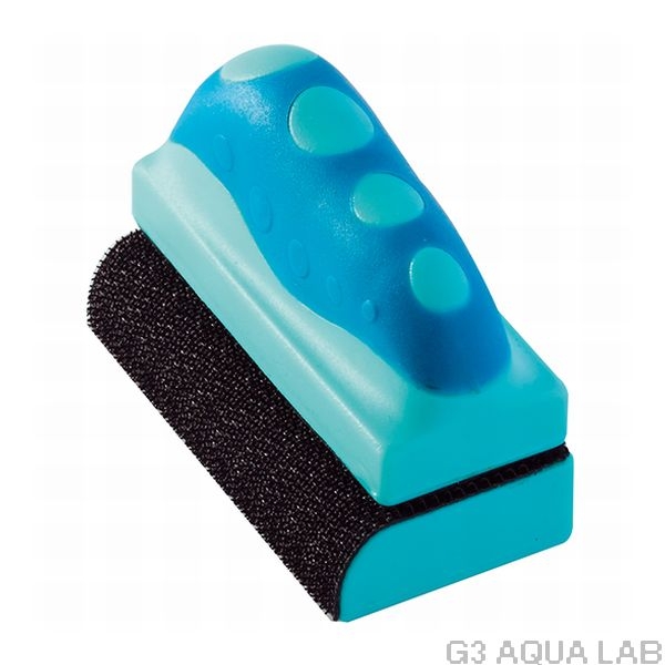 ●曲げガラス水槽の局面部分にあてて上下に移動させることにより、コーナーに付着して取りずらかったコケも落とせます。