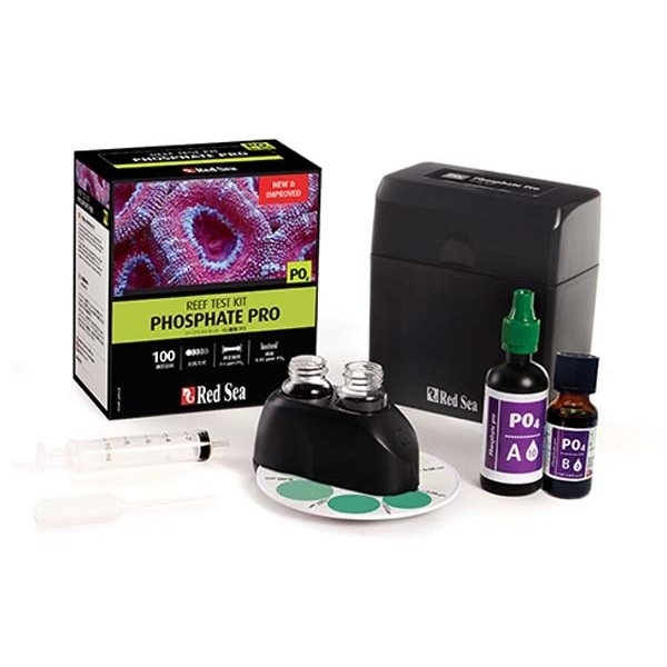 レッドシーのリン酸塩プロ リーフテストキットは飼育水のリン酸塩濃度を0.02ppmの高精度で測定する比色方式の検査試薬です。