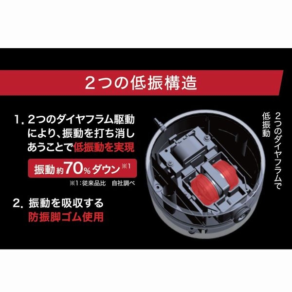 1.2つのダイヤフラム駆動により、振動を打ち消しあうことで低振動を実現