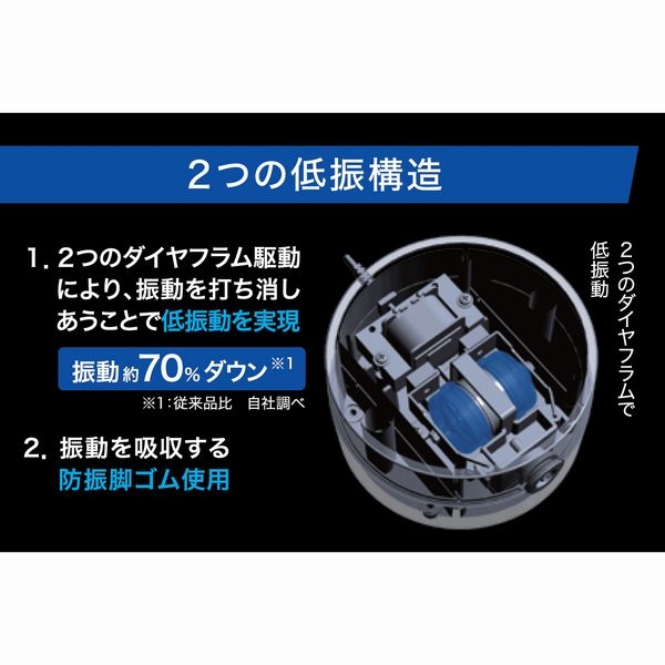 1.2つのダイヤフラム駆動により、振動を打ち消しあうことで低振動を実現