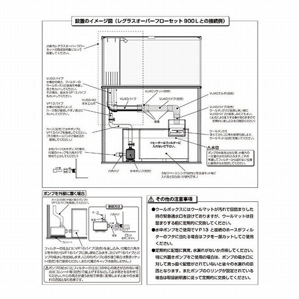 900〜1200mmのオーバーフロー水槽に適合する濾過槽です。