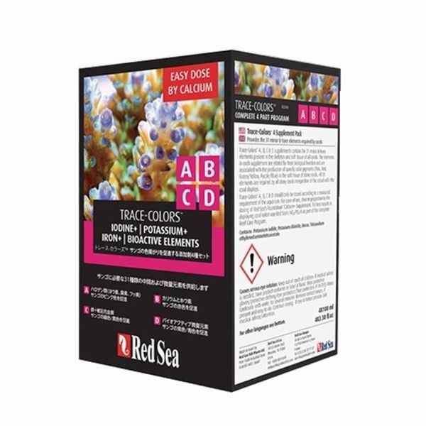 レッドシーのトレースカラーズA・B・C・Dはサンゴに必要な31種の中間および微量元素を供給します。