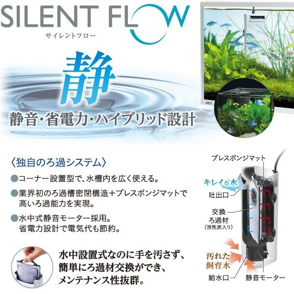 ュリンプ、メダカなど強い水流を行まない生体にも適しています。