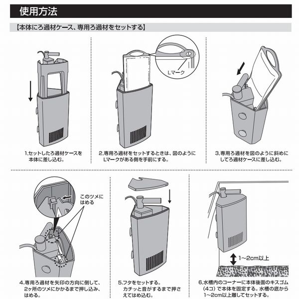 適応水槽:水容量60L以下の水槽用(水槽内の高さ25cm以上)※底砂がない場合