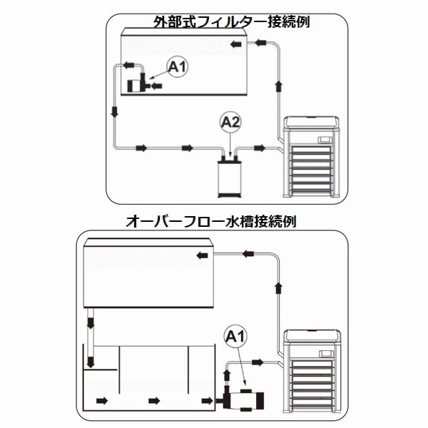 水流ポンプや外部フィルターに接続してご使用下さい。