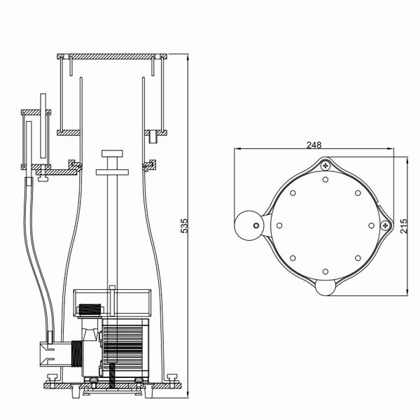 Inspire スキマーは超スペースセーブを実現するために排水口をスキマーの底に配置しました。 その為ボディにはアウトレットパイプがありません。このアイディアによりスキマーサイズをパイプの直径分 35〜50mm 程度小さくすることに 成功しました。Inspire スキマーはサンプをより広く使用することが可能です。