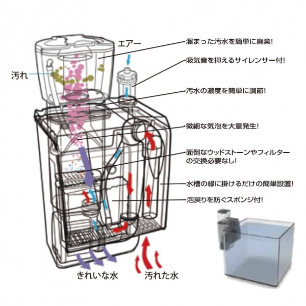 DCポンプ採用で静音性に優れた外掛式スキマーです。