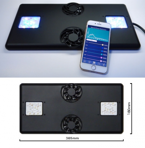 特に本体から60cm直下では、60×60cmの広い面積に於いて均一な光強度が分布し、 45cmや30cm直下に於いても水槽のガラス内面の反射により、水槽全域に於いて照度ムラのない 均一な光強度が実現できました。