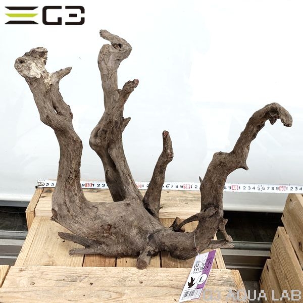 角のような太い枝が特徴の枝流木で、水槽での存在感は抜群です。