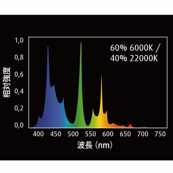 特別なカラーブレンド(6,000K:22,000K=60:40)が熱帯サンゴ礁の水深1m‐20mの自然な光の環境を再現します。