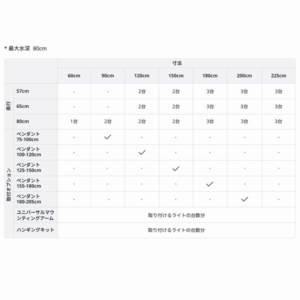 150cm の横長水槽には2台、225cm の巨大水槽でも3台の設置で十分となります。