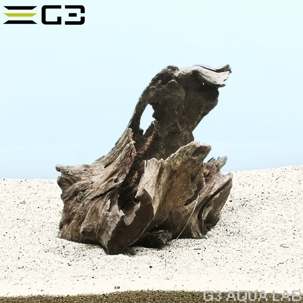 切株のような力強い形状が特徴の流木で、小型熱帯魚の隠れ家はもちろんプレコの餌としても最適です。