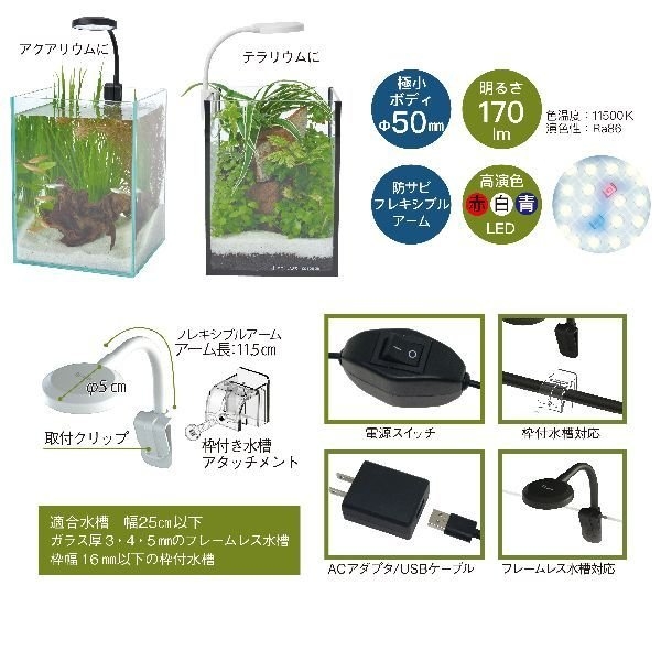 アクアリウム、テラリウムにおすすめの小型照明です。