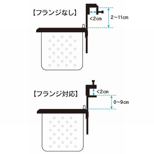 特別設計のハンギングパーツなので、フランジあり・なしどちらの水槽にも対応