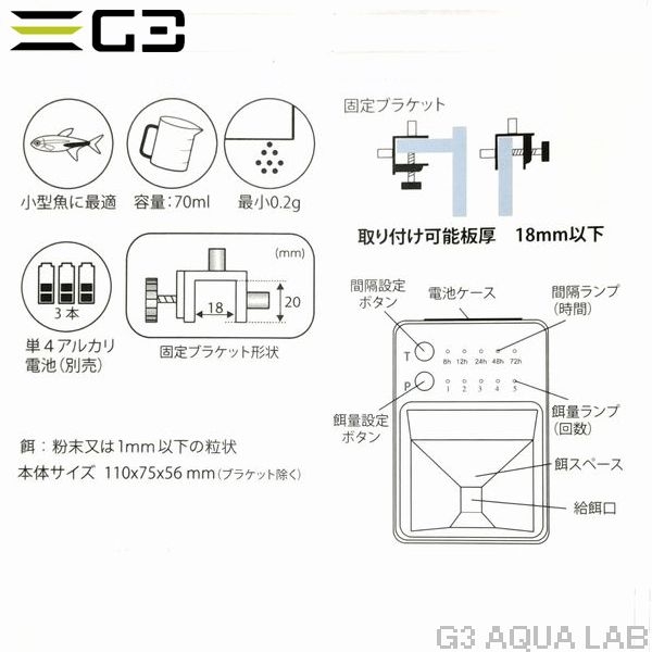 最長3日に1回の低頻度設定が可能、給餌量を絞ることがある水草水槽などにも最適。