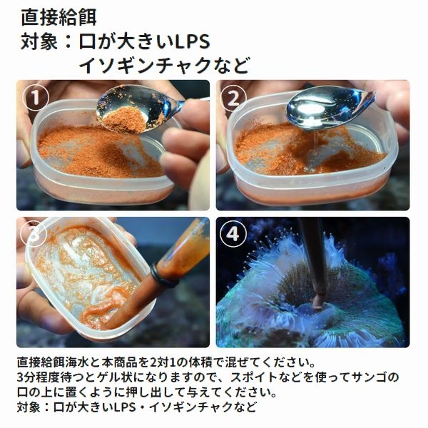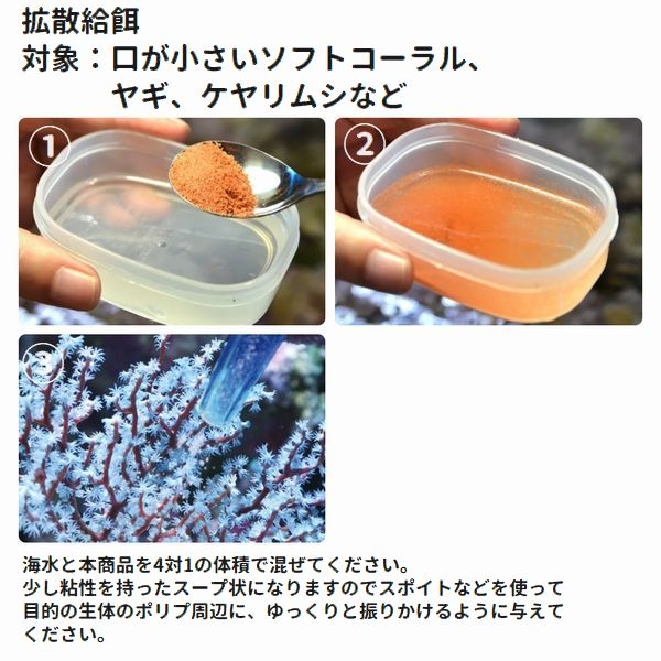 給餌を必要とするサンゴに、クリルを高配合した嗜好性の高いフードです。
