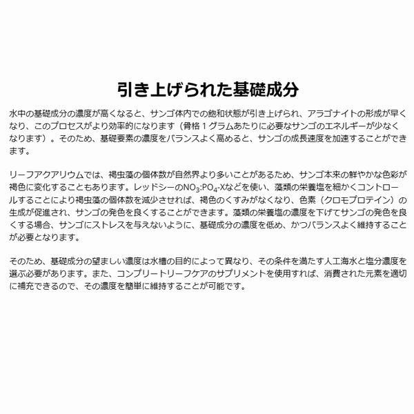 サンゴ水槽で定期的に消費される36種類の主要元素、中間元素、微量元素のすべてを補充することで、