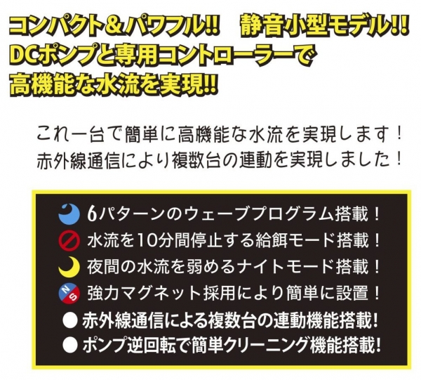 小型水槽用に最適な水流と超静音動作を実現!