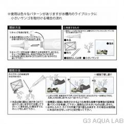●飼育環境でろ過が弱い小型水槽、水質に敏感な生体がいる水槽などへ導入する場合は、接着するものを別のトレー、もしくは水の張った別容器で行います。